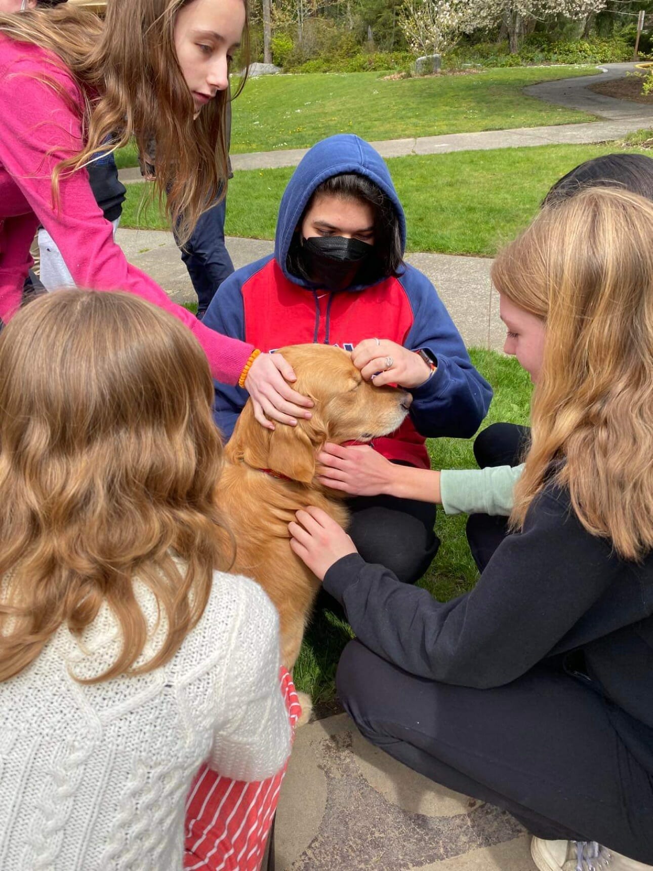 Our first opportunities were attending Covid vaccine clinics at all the island schools. Dazzle sat with students of all ages as they anxiously awaited their shot. They closed their eyes and squeezed Dazzle hard…then said “ that didn’t even hurt. “ Job well done Dazz! We have also been a part of the middle school’s Suicide Prevention Fairs, where students learn ways to cope with stress. Dazzle is a good teacher…patient, kind and non judgemental. Students often see us in the community…and the recognize Dazzle and they always pet her and give her a hug!