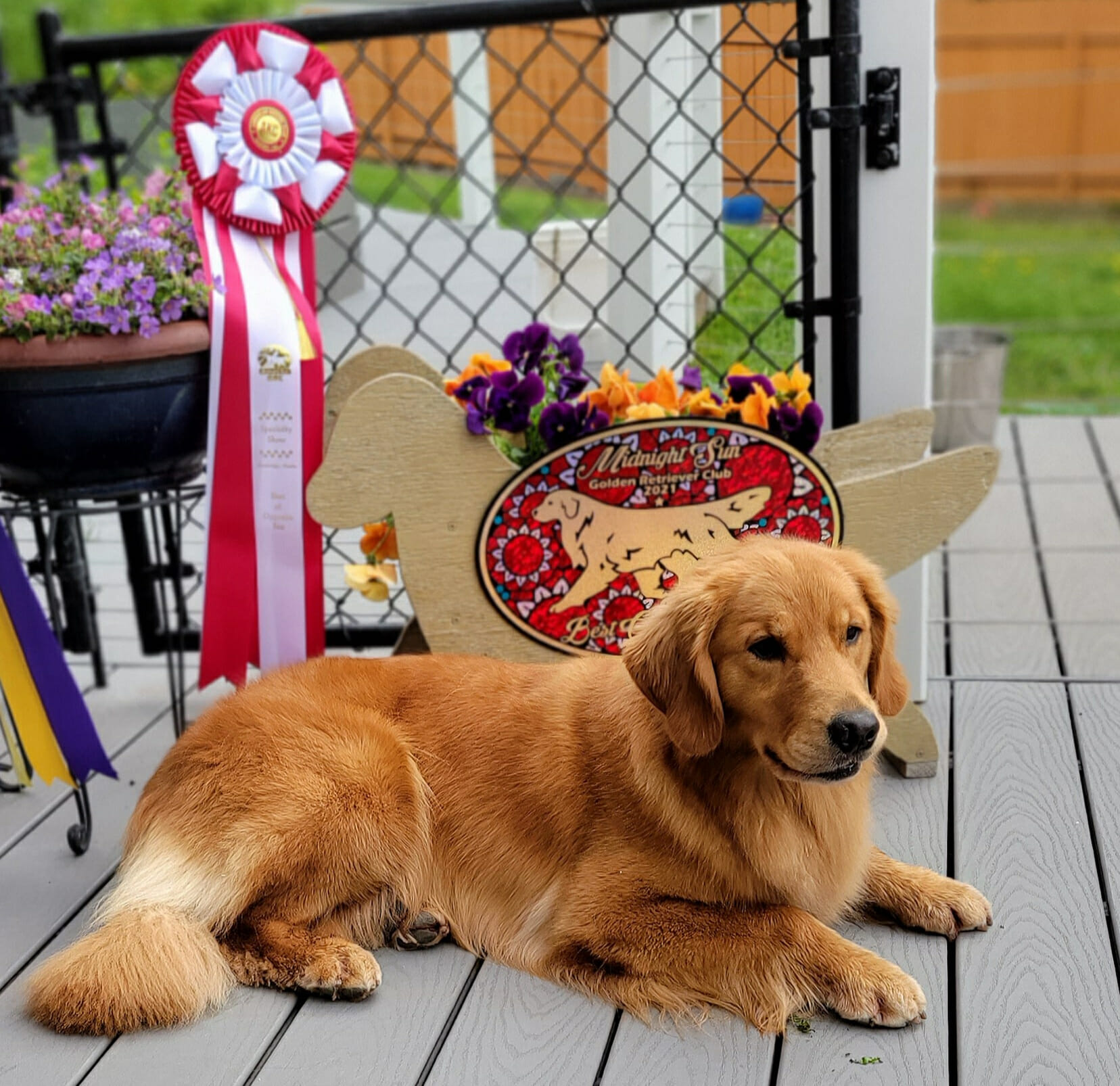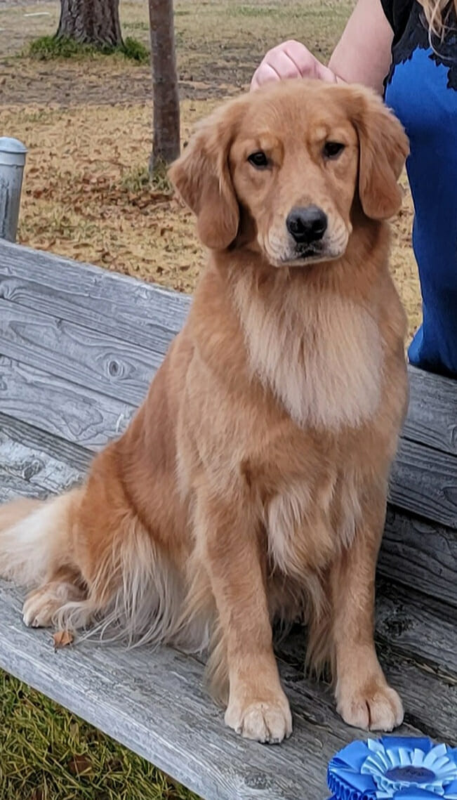 She also was Winner’s Bitch and a Judge’s Award of Merit under respected breeder judge Ken Mathews. Her show career continued with multiple BOS at golden specialties under breeder judges Jeff Pepper and Denise Reel.